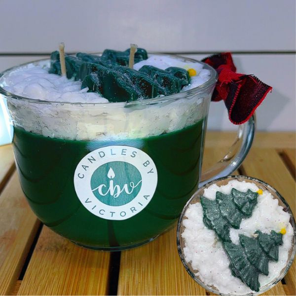 We begin with a green layer in our Rocky Mountain scent, an exquisite blend of our delightful Sugared Spruce aroma with the much-loved Leaves fragrance—a truly heavenly combination. Then, we add a second whipped layer of the same scent, topped with wax embeds in the shape of Christmas trees. Finally, we gently dust the entire candle with glitter, creating an enchanting addition to any festive decor.