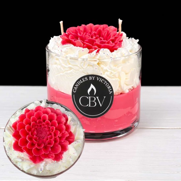 This delightful candle starts with a pink layer scented with our Flower Bomb fragrance. This is followed by a layer of white whipped wax with the same aroma, and topped with a pink Magnolia flower.