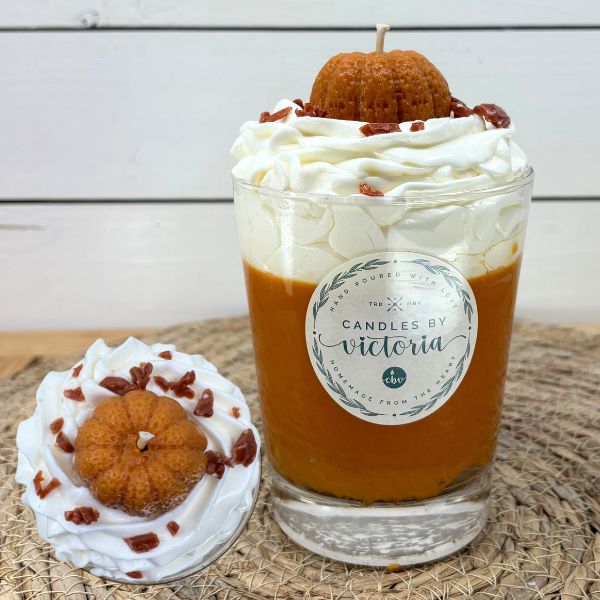 Indulge in our Sweet Treat line of candles, designed to encapsulate the essence, appearance, and sensation of home-baked treats without the calories. Enjoy this sweet treat fragranced in our famous Pumpkin Cheesecake scent.