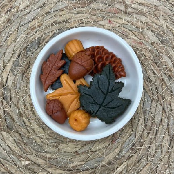 Enhance your home with our charming Fall Melts. Simply add a few to your warmers, relax, and savor the fragrance wafting through your space. Offered in a variety of delightful scents, the color of the melts will differ based on the fragrance selected. Each bag includes an assortment of Leaves, Pine Cones, and Pumpkins.
