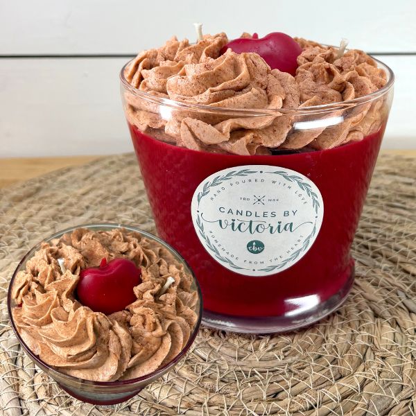 We start with our delightful Apple Pie Ala Mode scent, layered with Granny's Pie Crust, then adorned with wax apple slices and a scoop of wax ice cream, all topped off with a sprinkle of cinnamon. Absolutely delicious!